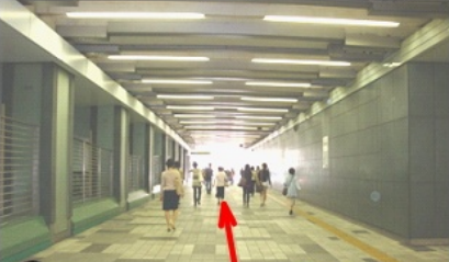 地下道を抜けたら右側階段を上り地上へ出ます。